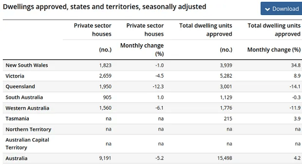 数据显示,私营部分住房审批量下跌5。2%至9,191套,而不包罗房正在内的私营部分住房审批量则上涨24。8%至5,859套。
