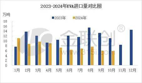 2024年10月EVA进口量为5。75万吨,同比削减48。09%,环比削减3。59%。终端需求跟进欠安,加之进口成本偏高,商业商采购心态隆重,10月份进口量环比。