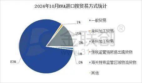 2024年10月进口EVA的一般商业较9月份占比持平,进料加工商业较9月占比添加3%,保税监管场合进出境货色较9月占比削减1%?。
