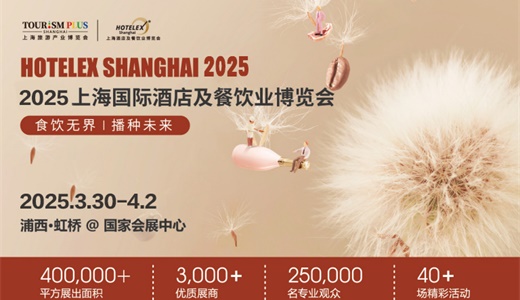 2025 TELEX 上海展示场将再次集结餐饮业的、创业人、新老品牌的、业界专家。现场的思维风暴、名家论道,涵盖餐饮业的方方面面。为将来成长供给创想,为行业痛点发声思虑,中转。聪慧取经验将正在这里碰撞开花,我们也将无机会正在此餐饮业更雄伟蓝图的降生。 2025HOTELEX Shanghai 2025年3月30日-4月2日,2025海国际酒店及餐饮业博览会(HOTELEX Shanghai)将正在国度会展核心(上海浦西·虹桥)举办。 由上海市文化和旅逛局指点的HOTELEX上海国际酒店及餐饮业博览会做为“十四五”期间沉点打制的三大手刺性勾当之一——上海旅逛财产博览会的主要构成部门,2024年将正在 国度会展核心(上海浦西·虹桥)举办。 OTELEX 上海展将继续为不雅众带来一场、高质量的行业嘉会;为酒店、餐饮人汇聚优良的资本,打制化的交换平台,帮力于行业成长。 展会规模将达到400,000+平米,估计将吸引250,000+名来自酒店餐饮、商超零售、休闲餐饮、文旅消费、大健康等行业的不雅众参加参不雅并取展商进行商贸交换。展商数量估计将达3,000+。 联系人:盛 阳(项目司理) 手 机:135 2418 7672 商务。