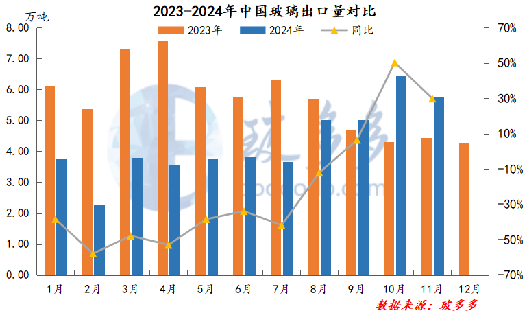 2024年11月玻璃进出口数据